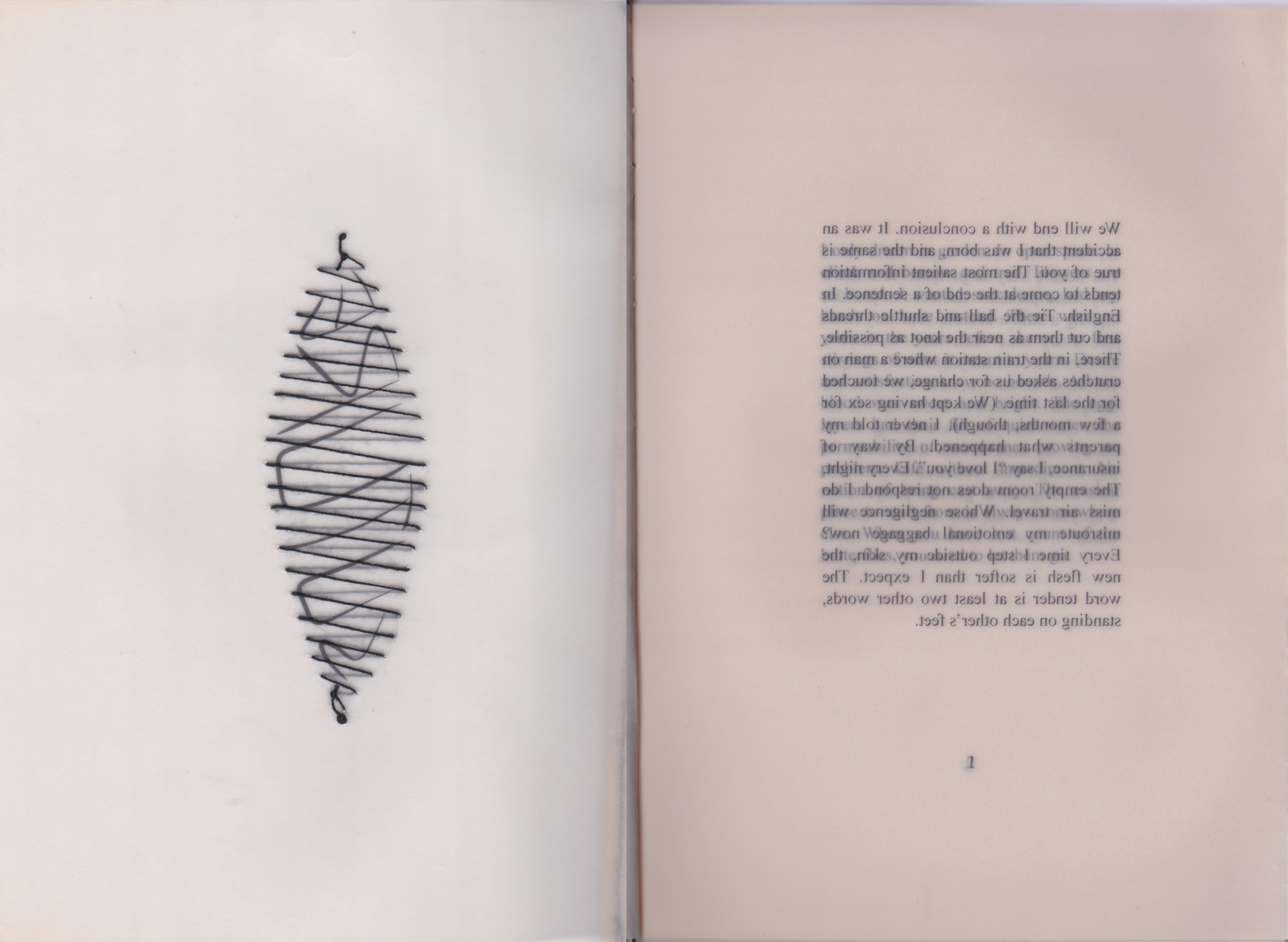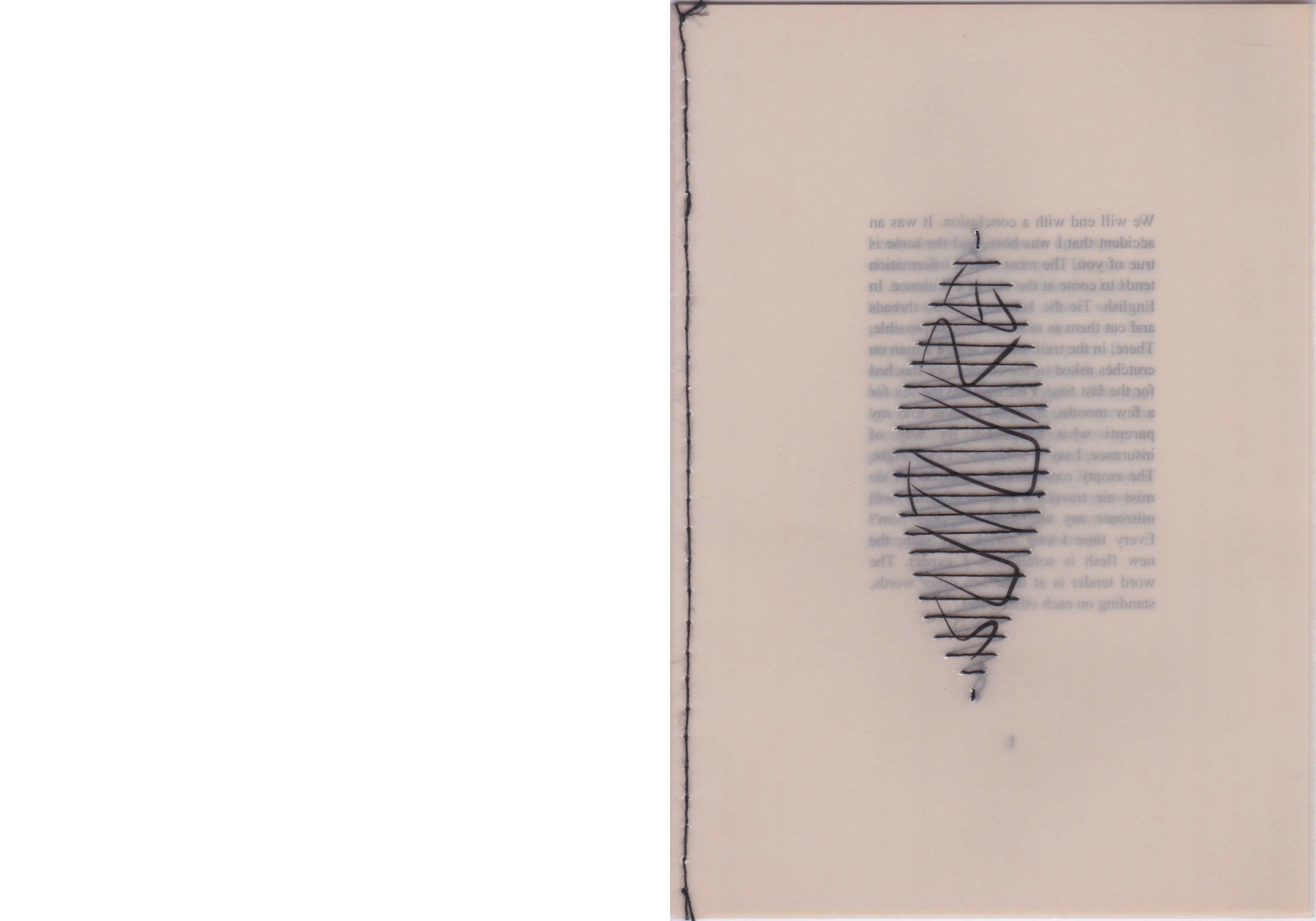 This piece has been sewn shut, its interior pages bound such that the text faces inward on pages that have not been cut open. Accessed digitally, these pages can never be cut open or pried apart.