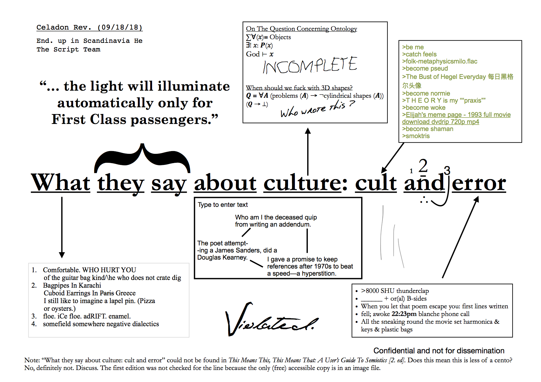 Iain Lim Jun Rui: “I have composed a bricolage around the line that Joey has written: ‘What they say about culture: cult and error.’ It is an attempt at semantics by exploring the malleability of meaning and language through postmodernity and meme culture. Instead of peering through a physical library like Joey, I recollected several dozens of meme pages that I follow on Facebook in addition to various mixed media files that I've kept as an Internet hoarder. I believe I have succeeded in finishing the work with regards to exploring the diachronicity and synchronicity of poetry as a medium. At the very least, I hope it entertains.”