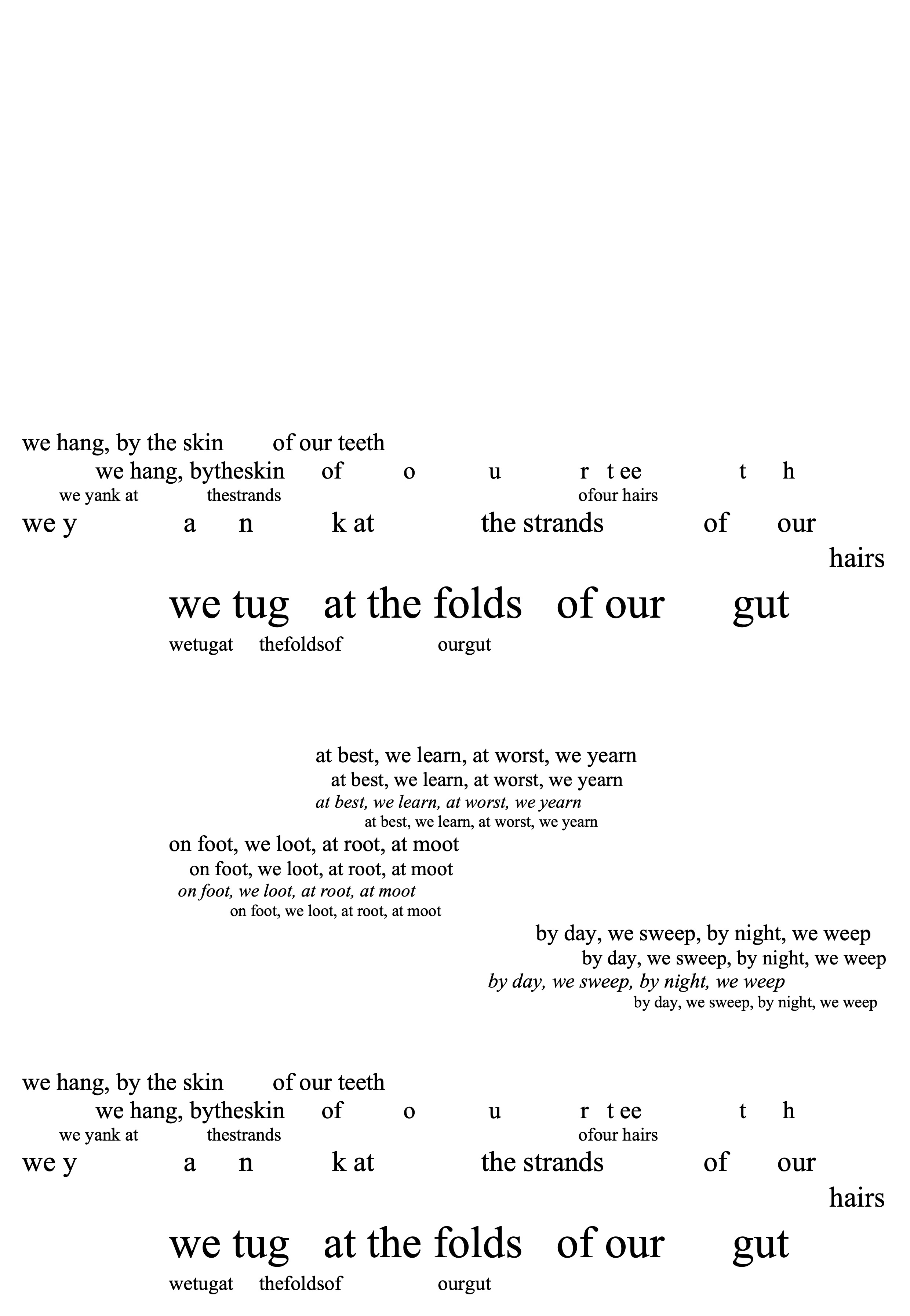 Two (out of seven) visual poems made in response to a Yeo Shih Yun exhibition. The work was exhibited and published in 2023.