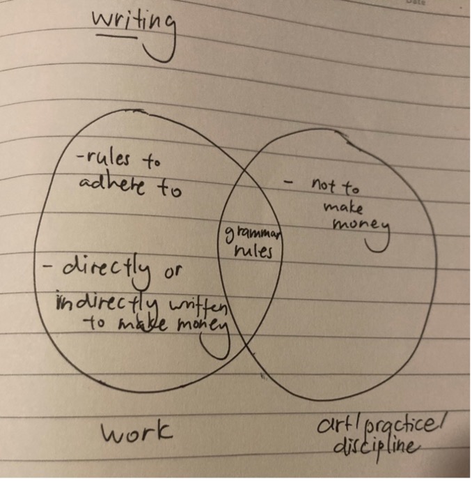 But I soon learned to regulate my relationship with writing in university. In the heydays of university workshop writing, everything was cool. It was the first time that I had heard of writing and making art as work. I knew of it ambiguously before, but then it all became so real. Here was a place where you entered into the minds of Yeats, Carver, Cummings, and other greats. Writers crossed mediums to produce their work.