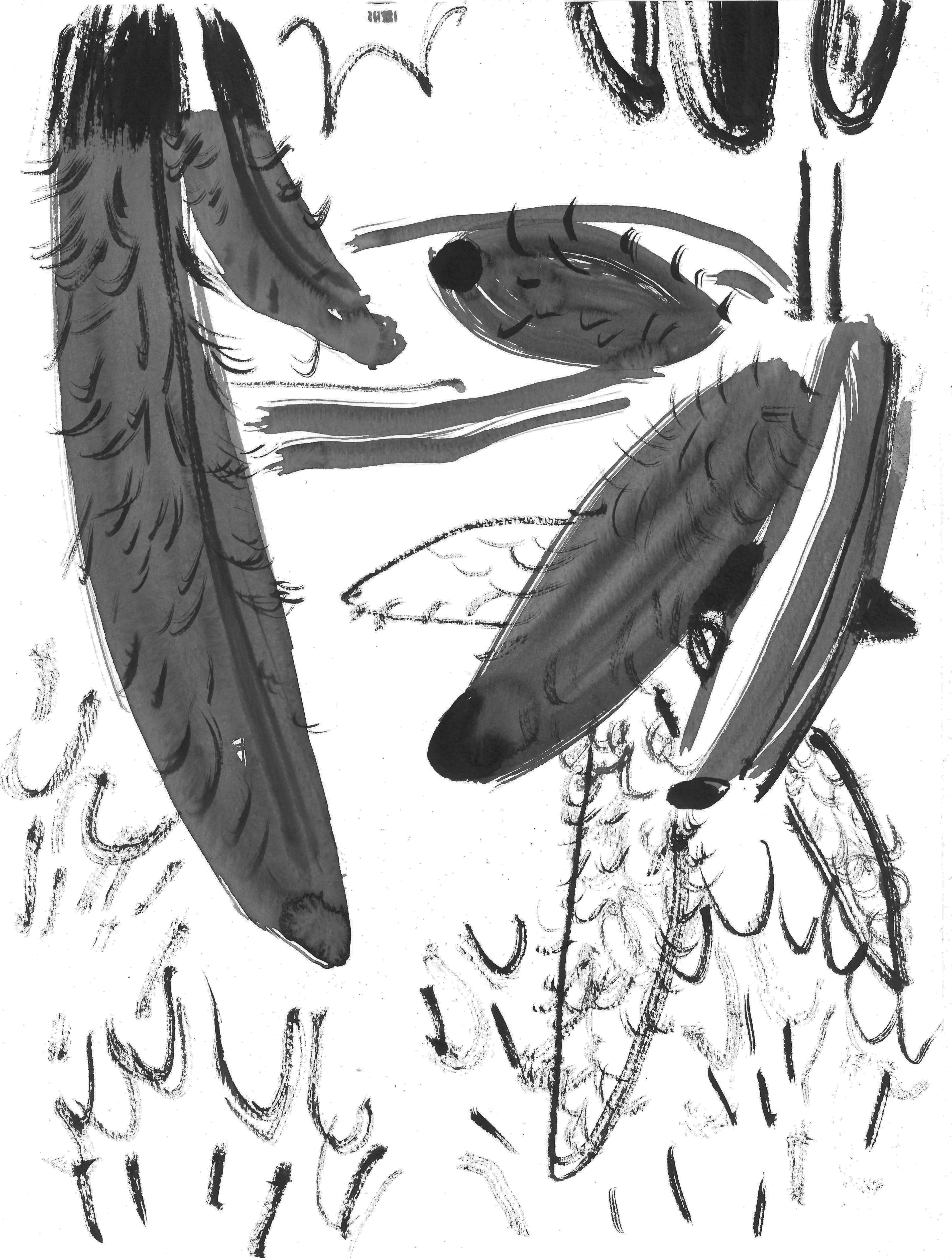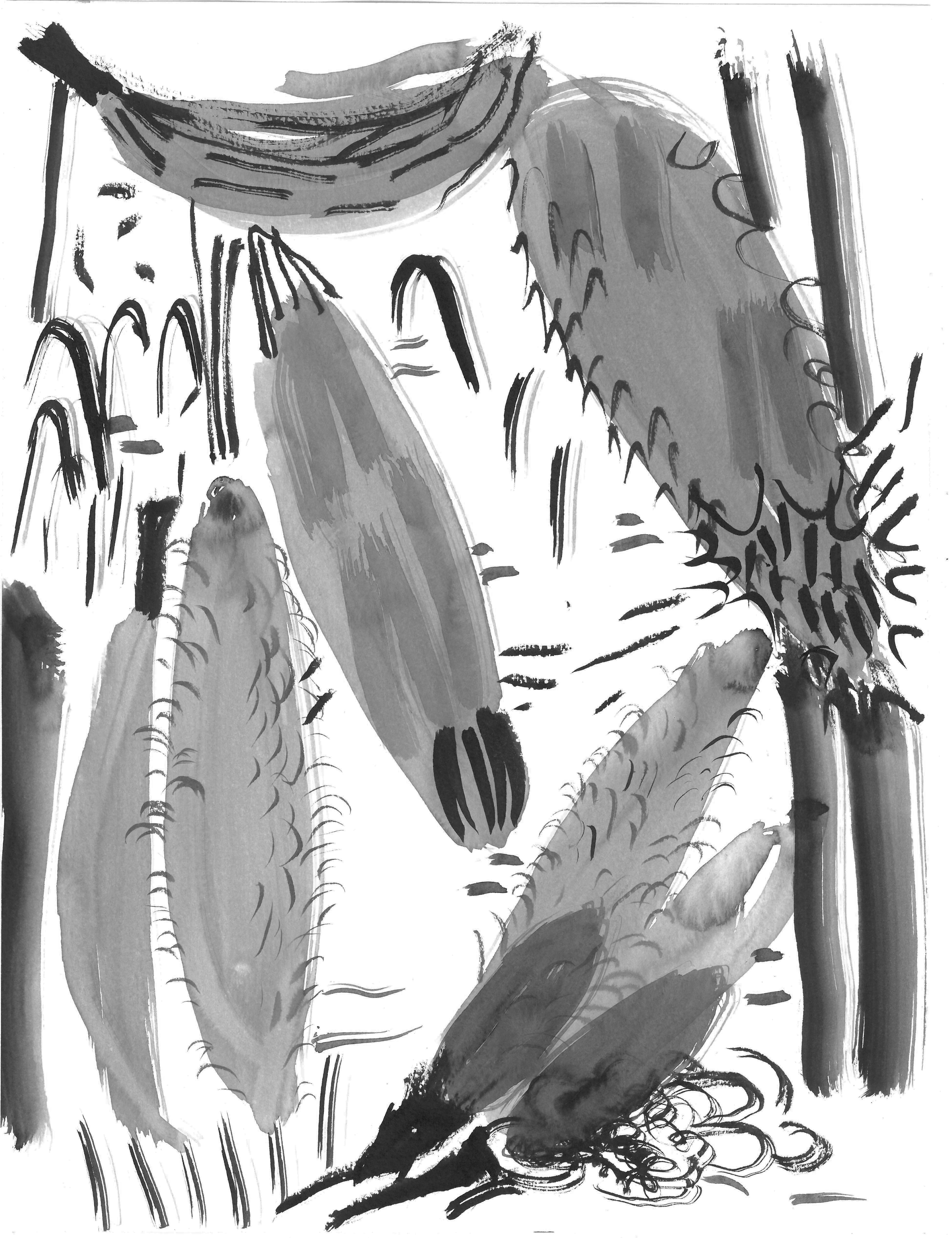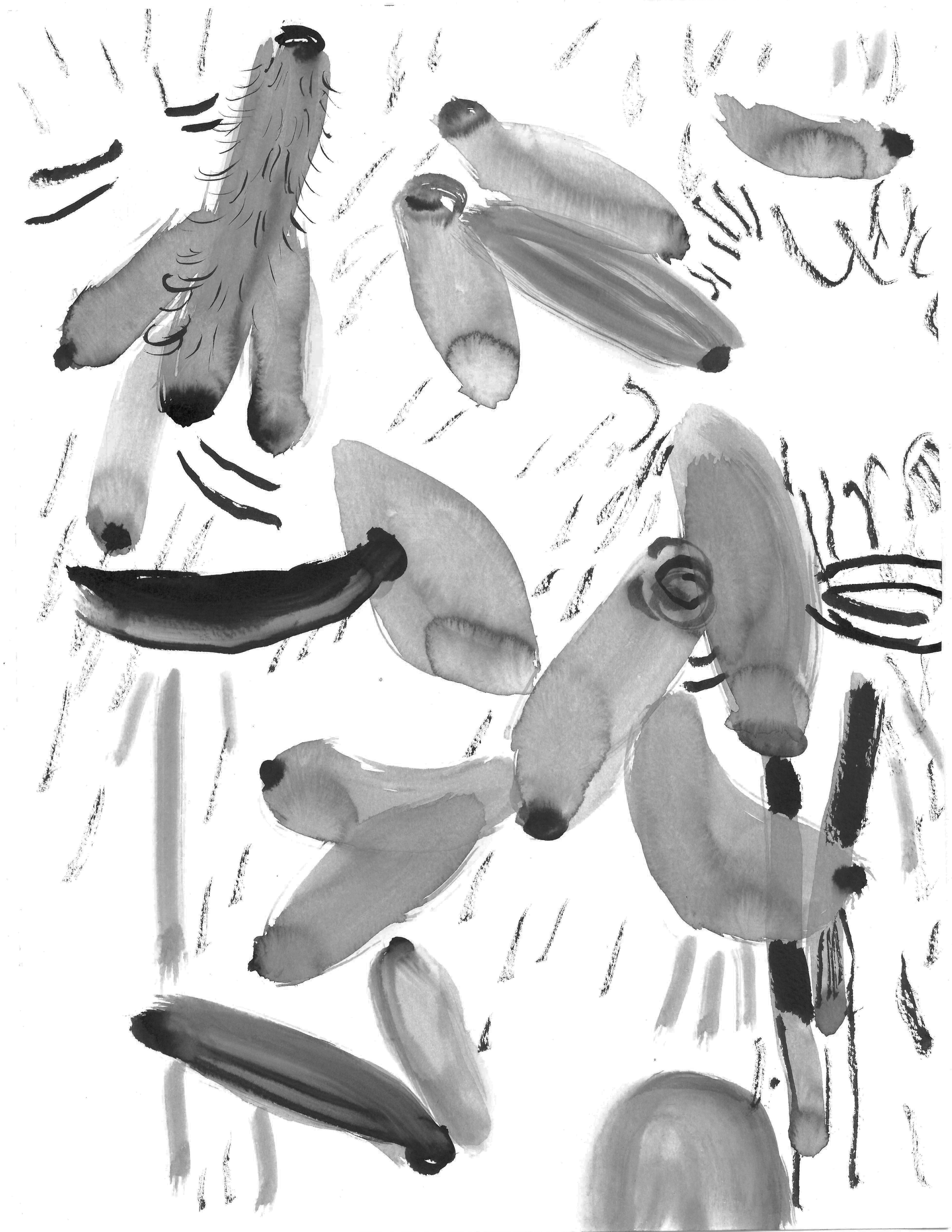 “I have decided to respond in a rather fluid way to passages, titles, and turns of phrase in LJ Kessels's work, in ink. The specific portions of material have formed the title of my responses.”
